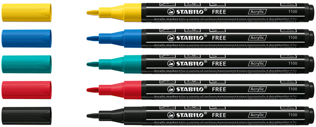 Marqueur peinture STABILO Free Acrylic T100 Royal assorti 5 pièces
