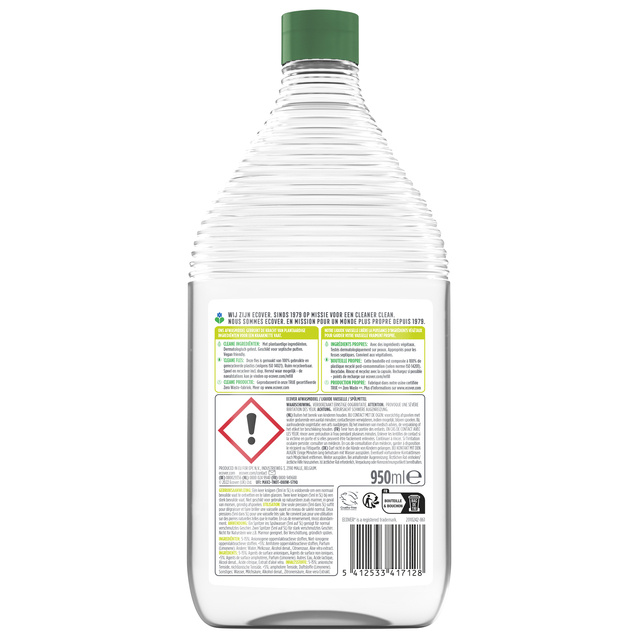 * Liquide vaisselle au parfum de citron et d'aloe vera pour une vaisselle propre et étincelante. * Parfum apaisant de citron et d'aloe vera. * Testé dermatologiquement pour les peaux sensibles. * Avec des ingrédients biodégradables. * Formule végétalienne. * Convient aux fosses septiques. * Flacon de 950ml composé à 100% de plastique recyclé (PCR), en grande partie recyclable. Bouchon composé à 50% de plastique recyclé, en grande partie recyclable.