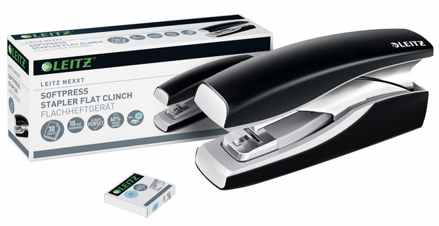 * Agrafeuse avec la technologie brevetée Softpress. * Agrafeuse souple avec beaucoup moins d’effort. * Vous avez besoin de 60% moins d’effort en comparaison avec une agrafeuse Leitz standard. * La technologie innovante Flat Clinch réduit les piles de papier de 40%. * A utiliser avec des agrafes Leitz S1 Softpress. * Capacité d’agrafage jusqu’à 30 feuilles (80g/m²). * Garantie 10 ans si utiliser avec des agrafes Leitz.