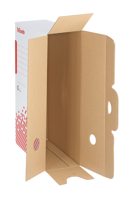 * Assemblage automatique pour un gain de temps. * Le double rabat renforce la fermeture de la boîte et l'oeillet de préhension. *Pour le papier A4 et folio et les documents dans des dossiers A4. * Taille parfaite pour les étagères d'archivage, la boîte peut être posi*tionnée verticalement ou horizontalement. * En carton ondulé 100% recyclé. * 100 % recyclable. * Certifié FSC®