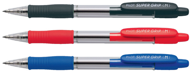 * Le stylo bille PILOT Super Grip avec mécanisme de bouton poussoir et zone grip en caoutchouc. * Recharge 2111. * Largeur de trait 0,27mm - Largeur de bille 1mm.