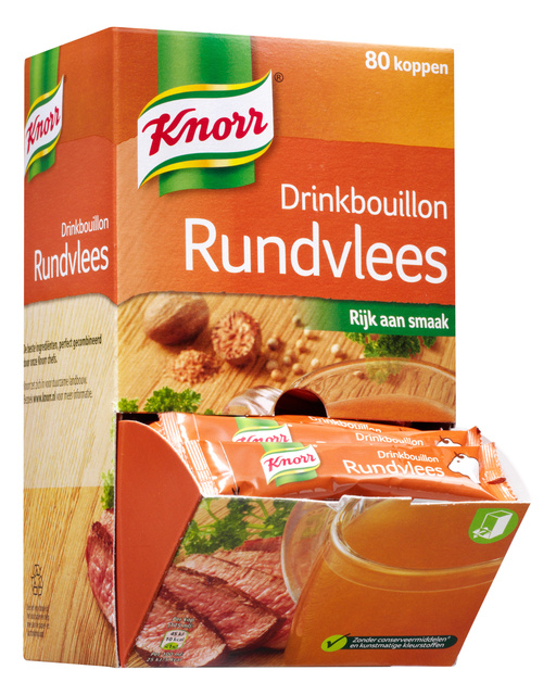 * Le bouillon à boire Knorr au boeuf est un bouillon délicieux puissant au goût raffiné grâce à l’ajout de nombreuses herbes. * C’est une collation épicée ne contenant que quelques calories par tasse. * L’emballage comprend 80 sachets à préparer rapidement. * 1 sachet pour une tasse de bouillon à boire. * Le bouillon à boire Knorr ne contient aucun conservateurs et colorants artificiels.