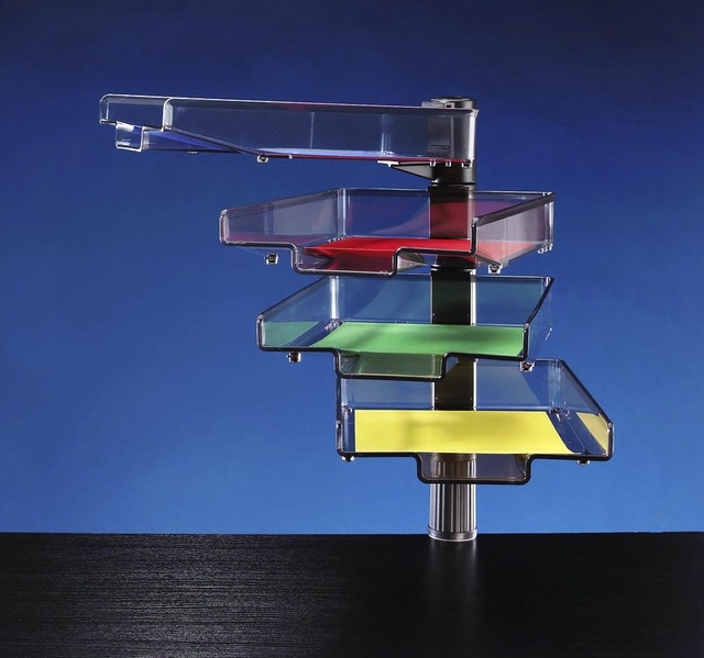 * Organisez facilement vos documents avec le jeu de corbeilles à courrier Hansa. * Les tiroirs ergonomiques peuvent pivoter à 360° et être utilisés en orientation paysage ou portrait, ce qui permet de trouver facilement l'agencement idéal pour vos besoins. * Conçu pour les documents A4 jusqu'à 24x34cm, ce lot comprend également une pince universelle d'une largeur de 20 à 72mm et du matériel d'étiquetage.