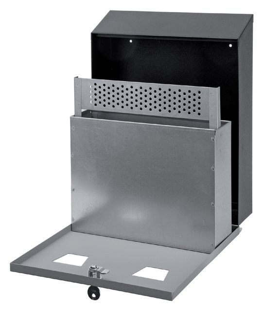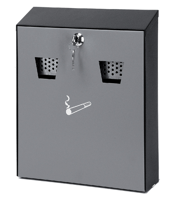 * Cendrier mural en acier galvanisé avec seau métallique à l’intérieur. * Ouvertures à l’avant pour la cendre avec zone d’écrasement integrée. * Grâce à la serrure, on peut le vider facilement en ouvrant la porte de face. * Dimensions 32x26x8cm.