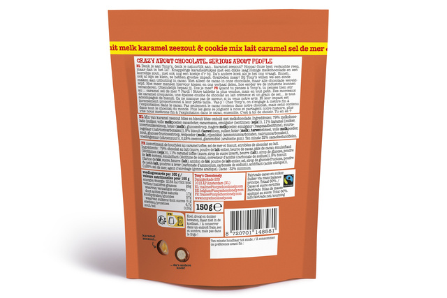 * Quand vous pensez à Tony's, vous pensez naturellement... au caramel et au sel marin? Waouh ! Notre barre la plus vendue, mais en Lil'. Des morceaux de caramel croustillants avec une épaisse couche de chocolat au lait crémeux et des grains de sel... accompagnés d'un cookie. Et ... même s'ils sont petits, ils ont un grand impact. Goutez-les !