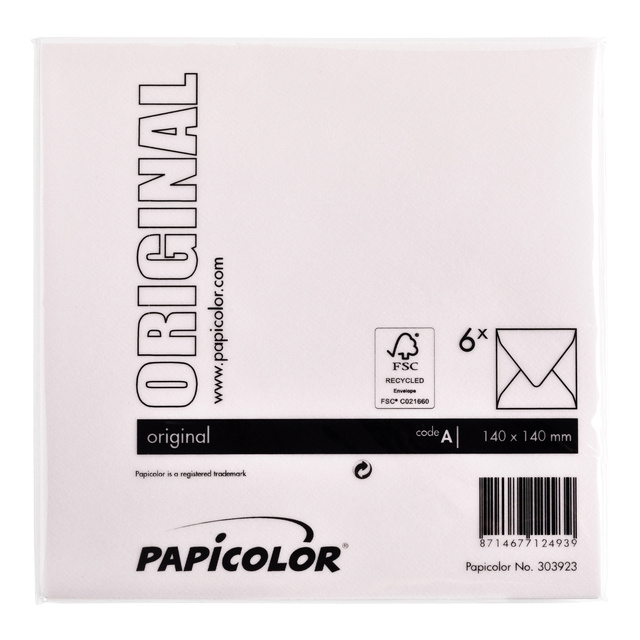 * Enveloppes colorées. * Disponibles en différentes couleurs. * Dimensions: 140x140mm. * Papier de 100 grammes. * Paquet de 6 pièces. * Dans la même couleur, il y a également du papier en format A4. * Poids d'une enveloppe env. 4 grammes.