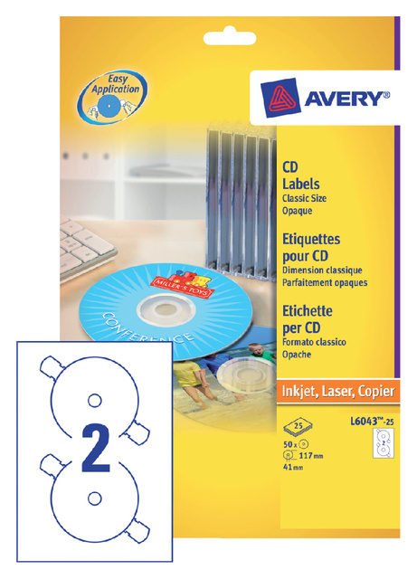 Etiquette CD Avery L6043-25 blanc 50 pièces