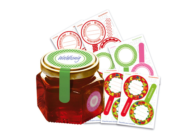 * Etiquettes autocollantes permanentes, multicolores pour couvercle. * Idéal pour décorer et marquer les pots de conserves, les boissons ou les boîtes d’épices. * Pour chaque contenu, le bon motif pour l’identification. * Indispensable pour mettre en appétit.