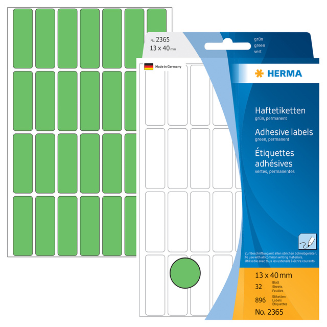 Etiquette HERMA 2365 13x40mm vert 896 pièces