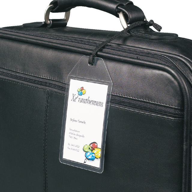 * Étiquette à bagage pour carte d’affaire 3L 72mmx123mm. * Conçues spécialement pour les cartes d’affaires de format standard. * Toutes les étiquettes offrent une protection contre l’usure, l’eau, la saleté et sont munies d’un cordon de fixation en nylon. * Les cartes sont inscriptibles à la main.