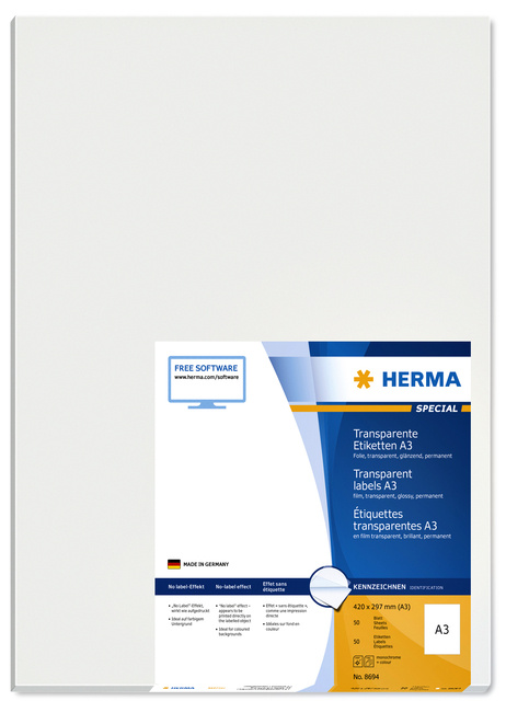 Etiquette HERMA 8694 A3 297x420mm 50 pièces transparent