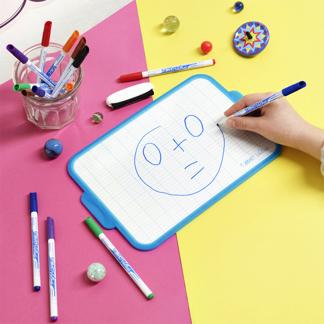 * Marqueur pour tableau blanc à base d'alcool. * Effaçable à sec même après quelques jours. * Couleurs vives * Capuchon à la couleur de l'encre. * Pointe ogive fine. * Encre à base d'alcool. * Odeur neutre. * Largeur de trait: 1,5mm.