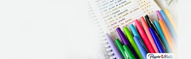 * Transformez votre écriture quotidienne en un moment merveilleux pour vos yeux grâce aux couleurs parfumées Paper Mate® Flair®. * Donnez à vos notes, croquis, gribouillis et projections un effet délicieux qui transformera même l’écriture la plus ennuyeuse en un magnifique spectacle. * Découvrez la douceur de cette encre métallique dans des nuances de couleur bonbon qui résistent au barbouillage et ne déteignent pas sur le papier. * Ces feutres sont dotés d'une pointe moyenne pour produire des lignes profondes et percutantes, parfait pour écrire et dessiner. * Les feutres ont un capuchon anti-rol sans clip.