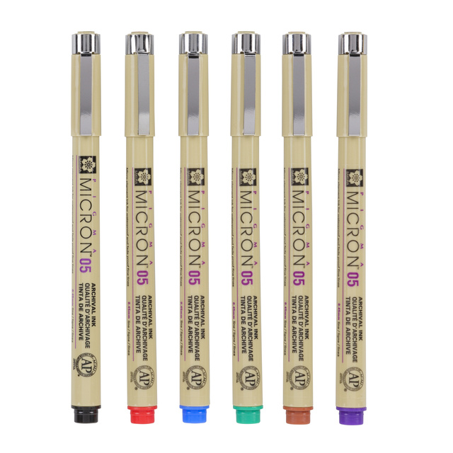 Fineliner Sakura Pigma Micron 05 set 6 couleurs de base