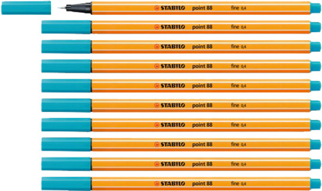 Le Point 88 : le fineliner idéal pour écrire, dessiner, esquisser et souligner. Grâce à la large gamme de couleurs, y compris les couleurs pastel et néon, vous avez un choix créatif complet à portée de main. La pointe en métal et l'excellente protection contre le dessèchement garantissent une qualité élevée et font de la pointe STABILO 88 un fineliner durable sur lequel vous pouvez compter tous les jours. Grâce à sa pointe gainée de métal, le fineliner est idéal pour une utilisation combinée avec une règle ou un pochoir, plus de taches gênantes. Parfait pour les idées créatives, à la maison, à l'école ou au travail. Le Point 88 est très durable, le capuchon et le corps du stylo sont composés à 96% de plastique d'origine biologique selon l'approche de l'équilibre de masse. * Fabriqué en Allemagne * Capuchon et corps du stylo fabriqués à 96% en plastique biosourcé selon le principe de l'équilibre des masses * Idéal pour une utilisation en combinaison avec une règle ou un pochoir, grâce à la pointe revêtue de métal * Pointe robuste, revêtue de métal pour une longue durée de vie * Peut rester longtemps sans capuchon sans sécher * Epaisseur du trait 0,4mm * Capuchon s'adapte au dos du stylo * Capuchon ventilé * Disponible en 65 couleurs. * Fineliner STABILO point 88 en bleu clair (31).