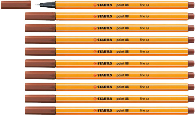 Le Point 88 : le fineliner idéal pour écrire, dessiner, esquisser et souligner. Grâce à la large gamme de couleurs, y compris les couleurs pastel et néon, vous avez un choix créatif complet à portée de main. La pointe en métal et l'excellente protection contre le dessèchement garantissent une qualité élevée et font de la pointe STABILO 88 un fineliner durable sur lequel vous pouvez compter tous les jours. Grâce à sa pointe gainée de métal, le fineliner est idéal pour une utilisation combinée avec une règle ou un pochoir, plus de taches gênantes. Parfait pour les idées créatives, à la maison, à l'école ou au travail. Le Point 88 est très durable, le capuchon et le corps du stylo sont composés à 96% de plastique d'origine biologique selon l'approche de l'équilibre de masse. * Fabriqué en Allemagne * Capuchon et corps du stylo fabriqués à 96% en plastique biosourcé selon le principe de l'équilibre des masses * Idéal pour une utilisation en combinaison avec une règle ou un pochoir, grâce à la pointe revêtue de métal * Pointe robuste, revêtue de métal pour une longue durée de vie * Peut rester longtemps sans capuchon sans sécher * Epaisseur du trait 0,4mm * Capuchon s'adapte au dos du stylo * Capuchon ventilé * Disponible en 65 couleurs * Fineliner STABILO point 88 en rouge sanguin (38).