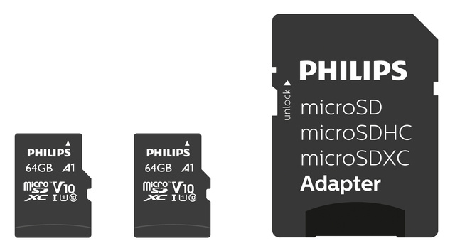 Les cartes mémoire Philips Micro USB Classe 10 UHS-I U1 peuvent être utilisées dans les smartphones, les tablettes, les PC, les appareils photo, les lecteurs de cartes, etc. équipés d'un emplacement pour carte Micro SDHC/XC. En utilisant l'adaptateur fourni, vous pouvez également utiliser la carte dans des appareils dotés d'un emplacement pour carte SDHC/XC de taille normale. Le blister contient 2 x 64 Go de capacité de stockage et offre suffisamment de capacité pour 2 x 18.200 photos ou 2 x 640 minutes de vidéo Full HD #. Prend en charge A1 Fast App Performance, qui permet de lancer des applications directement à partir de la carte. La norme UHS-I U1 combinée à la classe vidéo V10 fournit les spécifications adéquates pour l'enregistrement vidéo en temps réel sans mise en mémoire tampon.