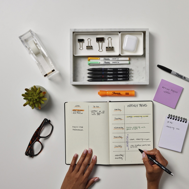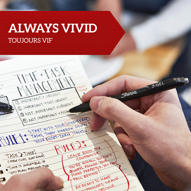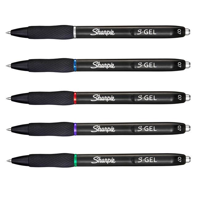 * Découvrez un stylo gel de haute qualité avec le Sharpie S-Gel. * Ce stylo Sharpie ne tache pas, ne s'étale pas et offre une expérience d'écriture exceptionnelle. * Ce stylo à encre gel offre des couleurs vives et accrocheuses qui illuminent votre écriture. * La prise en main en caoutchouc moulé garantit une expérience d'écriture confortable, quelle que soit la tâche d'écriture. * Le design élégant et la finition mate confèrent à ce stylo une allure professionnelle et élégante. * Disponible en différentes couleurs d'encre gel, le Sharpie S-Gel offre une expérience d'écriture fluide que ce soit à la maison, à l'école ou au bureau. * Couleurs d'écriture : noir, rouge, bleu, vert et violet.