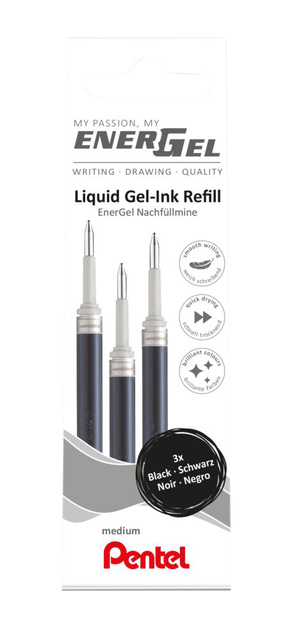 Recharge roller Pentel Energel LR7 Medium noir set 3 pièces