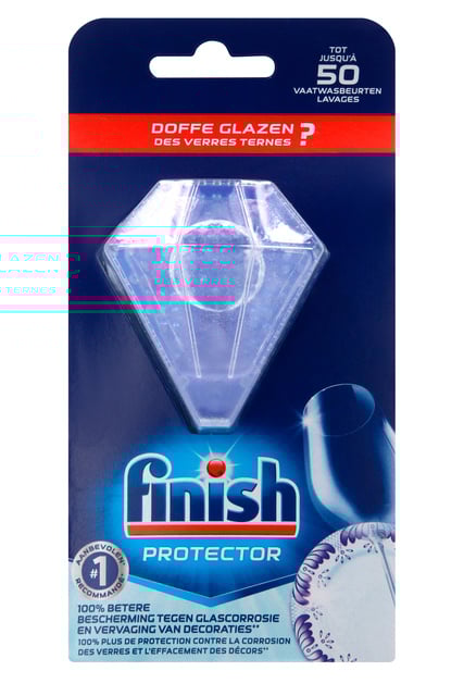 * Le Finish Protector est conçu pour protéger vos verres de la corrosion et votre vaisselle de la décoloration, en conservant leur éclat plus longtemps! * Meilleure protection du verre à 100% * Finish Protector tient jusqu'à 50 lavages * La solution simple pour garder vos verres et votre vaisselle comme neufs * Breveté et conçu en collaboration avec un fabricant de verre. * Protège les décorations et les couleurs de votre vaisselle et de vos couverts. * Finish a vu le jour en 1953 et s'est spécialisé dans les détergents pour lave-vaisselle depuis plus de soixante ans. Aujourd'hui, les produits Finish sont vendus dans plus de 40 pays à travers le monde. Finish est recommandé par les principaux fabricants de lave-vaisselle et de vaisselle. Marque engagée dans la préservation de l'eau, Finish s'efforce de réduire au maximum l'impact écologique de ses produits et de ses emballages. * Mentions de danger : H315, cat. 2 - Provoque une irritation cutanée. H318, cat. 1 - Provoque des lésions oculaires graves. H319, cat.2A – Provoque une sérieuse irritation des yeux. H335, cat. 3 - Peut irriter les voies respiratoires. H400, cat. 1 - Très toxique pour les organismes aquatiques. H410, cat. 1 - Très toxique pour les organismes aquatiques, entraîne des effets néfastes à long terme. * Consignes de sécurité : P101 – En cas de consultation d’un médecin, garder à disposition l’emballage ou l’étiquette. P102 – Tenir hors de portée des enfants. P103 – Avant utilisation, lire attentivement toutes les instructions.
