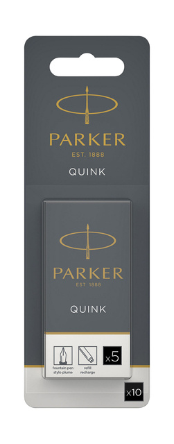* Appréciez le mode d’écriture traditionnel au stylo-plume et la commodité des recharges par cartouche d’encre. * Remplies d’une encre d’un noir profond et éclatant, les recharges PARKER QUINK sont conçues pour être utilisées dans les stylos-plumes PARKER. * Goûtez la sensation de plaisir que vous donne un instrument d’écriture qui glisse sans heurts sur le papier grâce aux recharges d’encre QUINK.