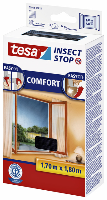 * Tesa Insect Stop Auto-aggripant Comfort pour fenêtre est une protection unique contre les insectes et les moustiques. * Cette solution, facile à installer et à enlever, permet de laisser la fenêtre ouverte tout en gardant les moustiques et les insectes à l'extérieur. * Cette moustiquaire extrêmement efficace est disponible en deux couleurs et plusieurs tailles, idéale pour la majorité des fenêtres. * Elle se distingue par son installation rapide et facile: collez la bande adhésive agrippante au cadre de la fenêtre, appliquez la moustiquaire dessus et le tour est joué. * La moustiquaire se retire tout aussi facilement et ne laisse pas de traces. * Résistante aux UV. * Lavable jusqu’à 30°C. * Réutilisable. * Couleur: anthracite. * Dimensions : 170x180cm.