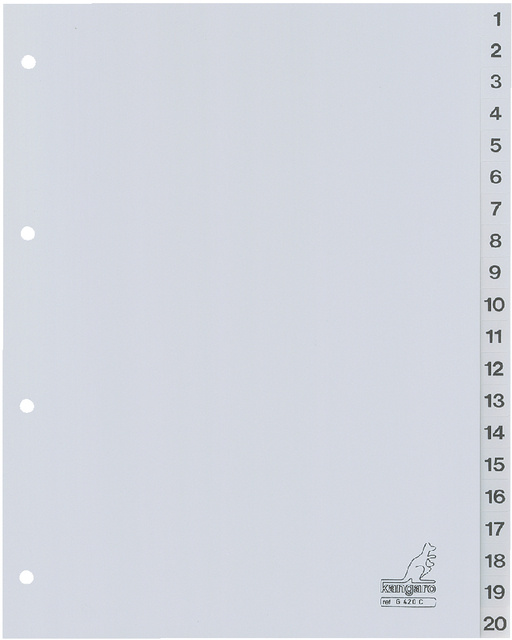 Intercalaires Kangaro 4 perf G420C numéro 1-20 gris PP