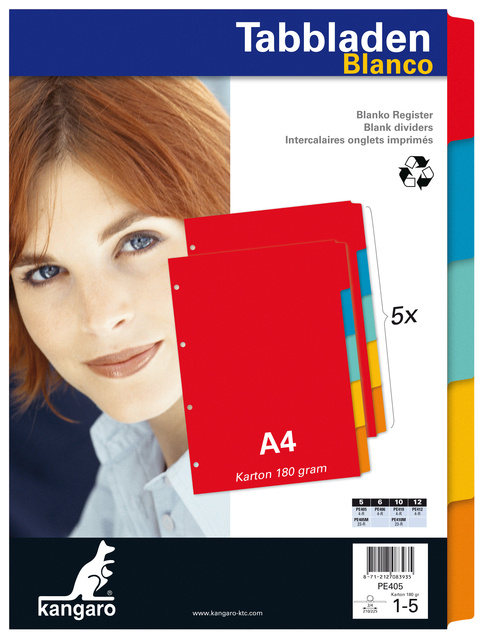 Intercalaires Kangaro 4 perf PE405 5 onglets assorti carton