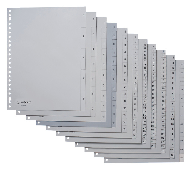 Intercalaires Quantore 23 perf numéro 1-10 gris PP