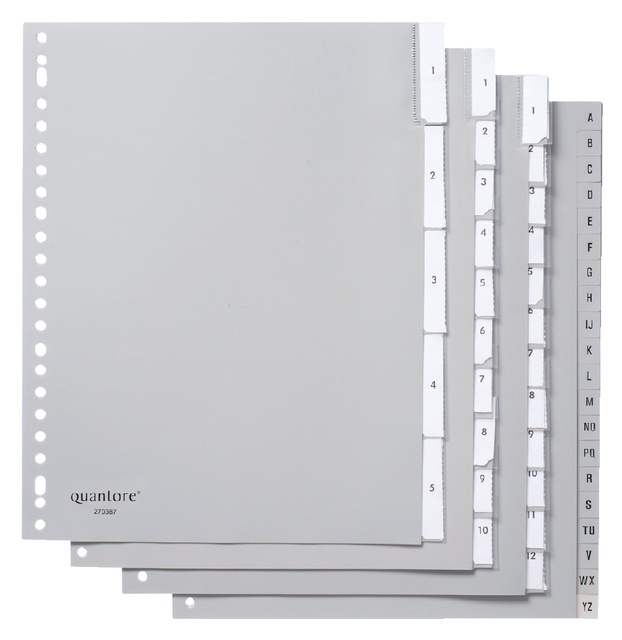 Intercalaires Quantore A4 23 perf 20 onglets A-Z large gris