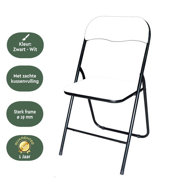 * Quelque chose à célébrer, à présenter ou pour créer un siège supplémentaire? La chaise pliante robuste de BRASQ peut être ajoutée facilement et rapidement. Grâce à son design élégant, elle s'adapte à tous les intérieurs et se déplie très rapidement pour être utilisée. Vous avez un événement à organiser, vous voulez installer confortablement vos patients dans la salle d'attente ou vous donnez une séance de formation? Glissez-la, installez-la ! La chaise pliante BRASQ se range facilement dans le placard de la cuisine, le garage ou la remise. Grâce à sa structure légère, la chaise pliante ne pèse que 3,2kg, ce qui la rend facile à prendre et à ranger. Ces chaises ont un design élégant et s'emboîtent parfaitement, ce qui permet de les aligner facilement et de minimiser l'espace de rangement. Avec une hauteur d'assise de 44cm et une assise souple, cette chaise pliante offre un confort d'assise optimal. Les pieds de la chaise sont fabriqués en métal robuste revêtu de poudre noire et sont dotés de capuchons en plastique qui évitent de rayer le sol. * Le siège est doté d'une surface d'assise confortable avec un rembourrage en mousse qui offre un bon soutien. Le dossier est également doté d'un rembourrage en mousse souple. La finition élégante du siège est en PVC. La chaise est conforme à la norme NEN-EN 12520:2015. * Dimensions du produit (LxlxH)) : 43x38x78cm. * Matériau : Tubes métalliques, rembourrage en mousse et finition en PVC. * Dimensions Ø 19x0,8mm (tubes). * Poids : 3,2kg. * Poids maximum supporté : 120kg. * Garantie : 1 an.