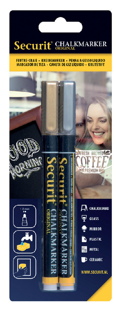 Marqueur craie Securit SMA-100 ogive 1-2mm or/argent assorti 2 pièces