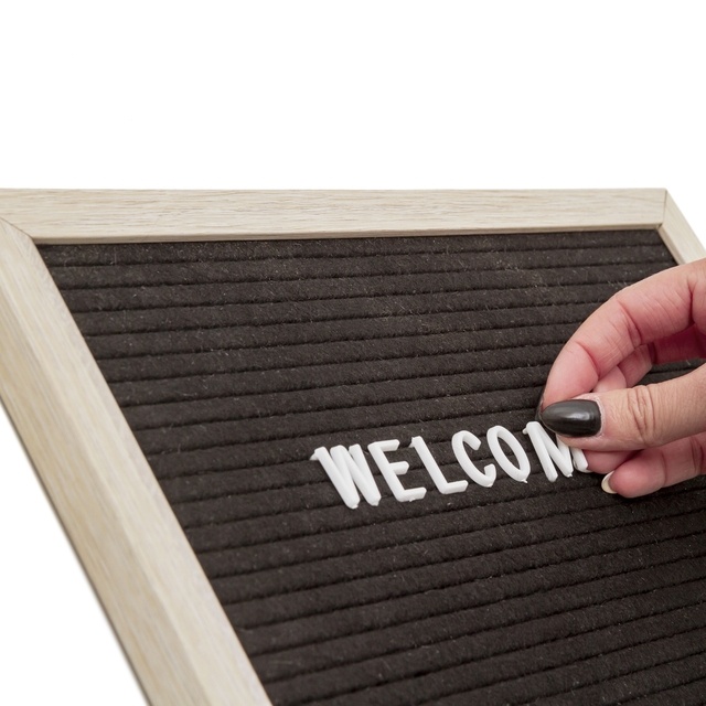 Vintage et élégant, notre tableau d'affichage à lettres noir avec un cadre en bois clair. Affichez votre menu, vos vœux ou une citation. * Les lettres sont faciles à assembler et à ajuster pour un changement facile et rapide du contenu. * 500 lettres sont incluses avec le tableau noir. * Les cadres sont disponibles en trois formats. Les deux plus petits cadres peuvent être suspendus ou posés sur un comptoir. Le plus grand cadre peut uniquement être suspendu. * Le tableau à lettres noir est parfait pour une utilisation dans les cantines, les restaurants, les magasins et les bureaux.