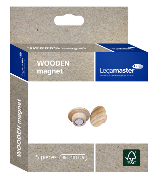 * Aimants en bois (5 pièces). * Fabriqués en bois hêtre "fagus sylvatica". * Produit rond, diamètre 25mm. * Convient pour les tableaux blancs et tableaux en verre de Legamaster. * Le bois est un produit naturel, chaque article est unique en couleur et en apparence.