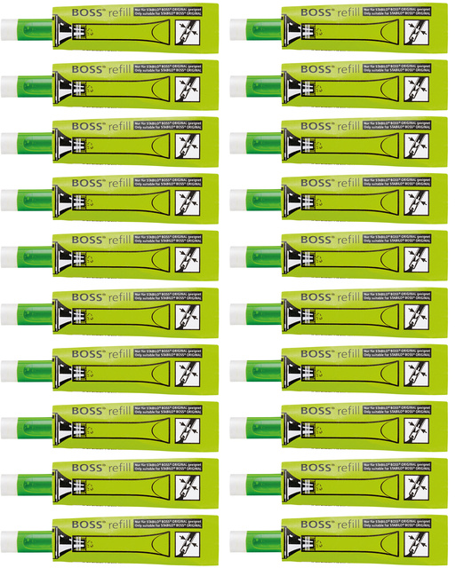 * La recharge STABILO BOSS ORIGINAL est un système de recharge pour les surligneurs STABILO BOSS ORIGINAL, STABILO BOSS SPLASH et STABILO GREEN BOSS. * Les recharges pratiques sont faciles à placer sur la pointe et le surligneur se recharge. * Chaque recharge est emballée indépendamment.