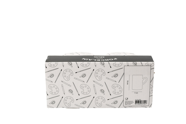 * Mug en porcelaine avec anse à personnaliser. * Le mug convient aux boissons chaudes et froides. * L'anse robuste permet une bonne prise en main. * Si vous souhaitez décorer le mug, veillez à ce que la surface soit parfaitement propre, exempte de graisse et sèche. * Si vous souhaitez peindre votre tasse, utilisez une peinture qui résiste aux températures élevées du lave-vaisselle. Vous conserverez ainsi plus longtemps votre belle œuvre d'art. * N'oubliez pas non plus de suivre les instructions concernant le séchage de la peinture au four. * Mug en porcelaine que vous pouvez décorer avec des marqueurs pour verre et porcelaine ou de la peinture pour verre et porcelaine. * Dimensions : hauteur 10cm, diamètre 7,4cm. * Couleur : blanc. * Lot de 2 pièces.