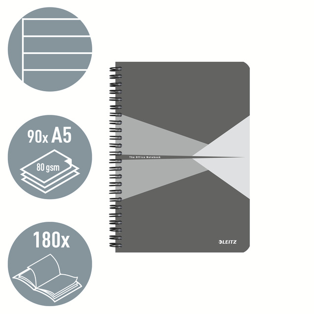 Cahier Leitz Office A5 ligné 180 pages 80g gris gris