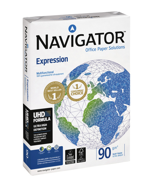 * Navigator Expression est un papier blanc superbe de haute qualité et est fabriqué en utilisant la dernière technologie dans le domaine de la production de papier. * Idéal pour l’impression de rapports, mémos, graphiques en couleur, tables de données,… * Papier blanc avec un excellent contraste d’impression pour un effet d’encre de haute qualité des documents en couleur. * Blancheur: CIE 169. * Surface microporeuse pour un séchage rapide de l’encre et une absorption absolue pour images en haute définition. * Extra épais et opaque pour de meilleurs résultats d'impression et une définitions de caractères précis.
