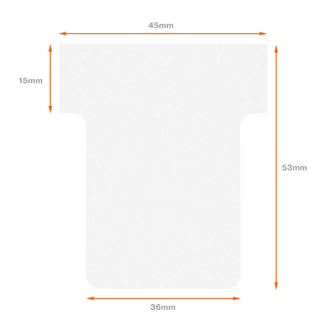 * Fiches en T pour tableaux de planning. * Partie visible de 15mm pour mot clé ou nom. * La partie inférieure offre de l’espace pour informations supplémentaires. * Différentes couleurs et largeurs. * Ces cartes Nobo sont compatibles avec les tableaux planning de Jalema. * Paquet de 100 pièces.