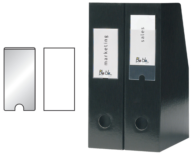 * Les portes-étiquettes vous aident à organiser votre bureau et vos archives. * Robustes portes-étiquettes adhésives en polypropylène. * L’adhésif puissant convient particulièrement aux surfaces difficiles. * Avec étiquettes unies.