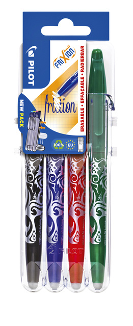 * Set2Go x4 – Roller FriXion – Noir / Bleu / Rouge / Vert. * Le set à emporter avec vos FriXions préférés. * Largeur de trait 0,35mm - Largeur de pointe 0,7mm.