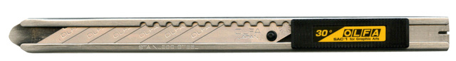 * Cutter dont la lame présente un angle de coupe de 30 degrés, spécial arts graphiques. * Corps en métal avec clip. * Lame : 9mm. * Lame de remplacement : SAB.