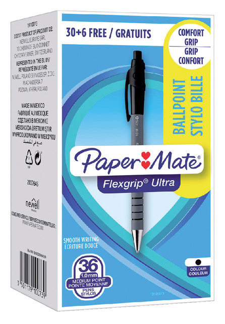 Stylo Bille Paper Mate Flexgrip Ultra Medium noir 30+6grat