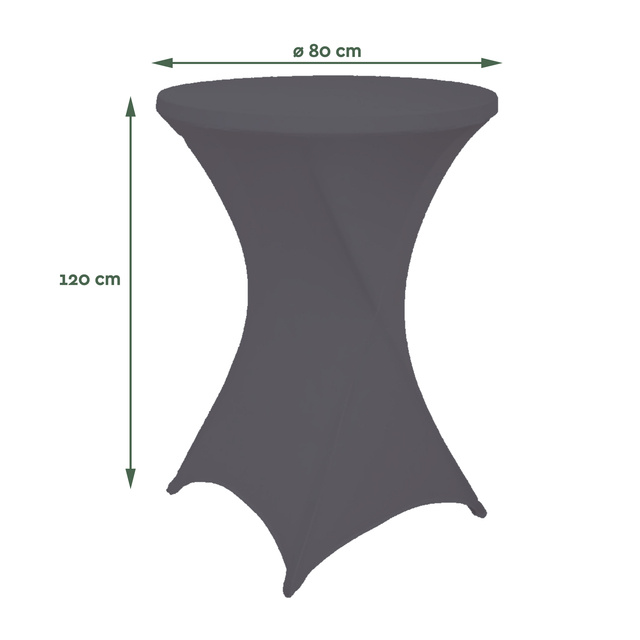 * Cette luxueuse housse de table BRASQ est le parfait accessoire pour tous les événements. Le matériau de haute qualité et la finition élégante donnent à la table haute un aspect unique. * La housse est spécialement conçue pour les tables rondes d'une hauteur d'environ 110cm et d'un diamètre de 80cm. Elle s'accorde parfaitement avec la table haute BRASQ. * Le tissu extensible permet à la housse de table haute d'épouser parfaitement la forme de la table et les coins inférieurs sont dotés d'un élastique solide. Ces pieds cousus permettent à la housse de rester en place et de ne pas se détériorer. Il est facile de glisser la housse autour de la table haute vous-même. * Cette housse de table haute est également facile à entretenir. Lorsque la housse est sale, vous pouvez facilement la laver. Accrochez-la immédiatement après l'avoir lavée pour éviter les plis et la housse sera comme neuve. * Que vous organisiez une fête, une conférence d'affaires ou toute autre occasion, cette housse de table haute vous garantit de faire bonne impression. * Dimensions du produit : 110x74cm. * Matière du produit : 10% spandex, 90% polyester.