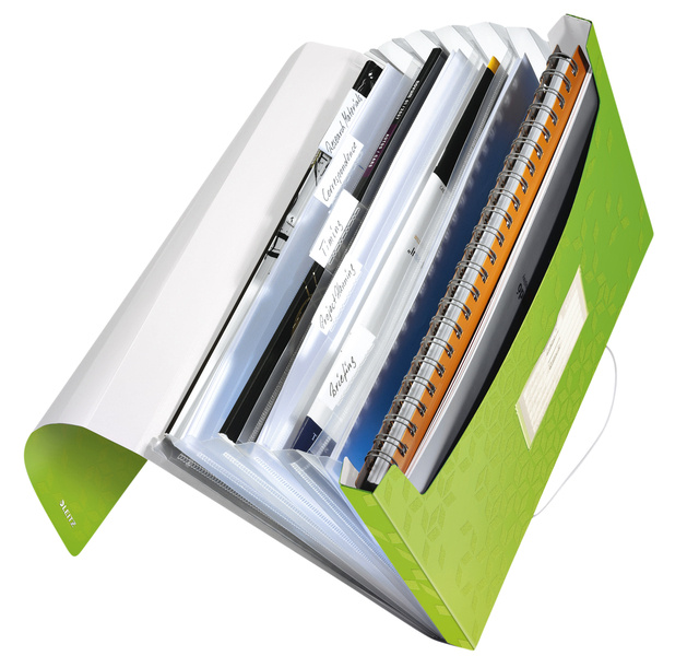 * Trieur léger de haute qualité en PP dans une palette de couleurs éclatantes WOW au design géométrique élégant. * Idéal pour le tri et l’organisation des documents en déplacement. * Avec 6 compartiments extensibles avec onglets pour une identifications facile du contenu. * Pochette de classement à l’avant pour stocker petits objets ou carnet de notes. * Fermeture élastique pratique pour un transport sûr des documents. * S’adapte aux chemises standards, cahier, pochettes. * Capacité : 250 feuilles A4 (80g.). * Sans acide et Copysafe. * Accessoires de la gamme éclatante WOW.