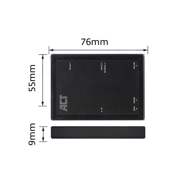 * Prise en charge des cartes mémoire les plus courantes : Les cartes mémoire les plus utilisées sont prises en charge par le lecteur de cartes ACT AC6370 USB 3.2 Gen1 (USB 3.0) : SD, SDHC et la dernière génération de cartes SDXC.