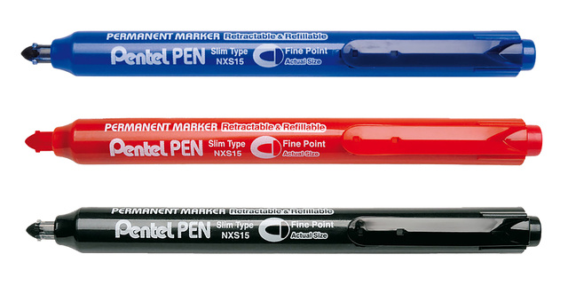 * Marqueur permanent avec un mécanisme rétractable, ne cherchez plus le capuchon. * A utiliser avec une seule main. * Clapet hermétique pour une bonne protection une fois la pointe rentrée, pour éviter le séchage de la pointe et les contacts avec les vêtements entre autres. * Doté d’un clip pratique pour le ranger dans la pochette d’un vêtement. * Convient pour toutes les surfaces comme carton, bois, verre, métal caoutchouc et papier. * Largeur de trait 1mm.