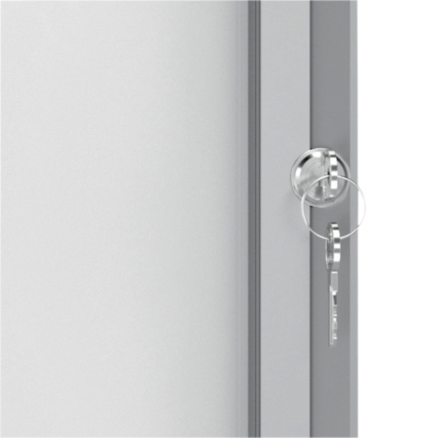 * Vitrine pour l’extérieur. * Moyen élégant et simple pour la protection et la sécurité de documents importants. * Equipée en verre sécurisé et verrouillable pour une protection optimale. * Panneau arrière en métal blanc magnétique avec une surface effaçable à sec. * Cadre solide en aluminium à porte vitrée verrouillable d’une épaisseur de 4mm. * Installation facile à l’aide d’une seule cormière de fixation. * Avec 2 clés. * Pour 12 feuilles de papier en format A4. * Dimensions extérieures: 1000x972x45mm.