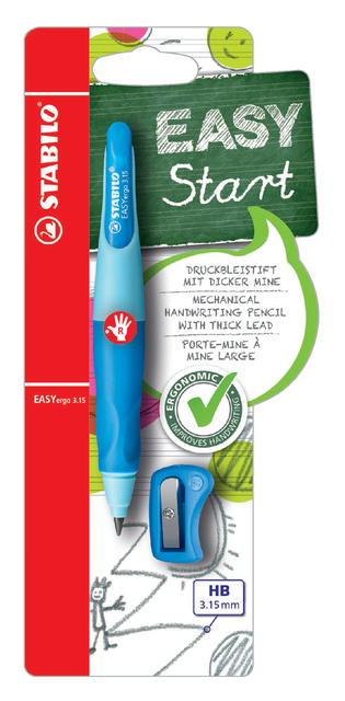 Portemine STABILO EASYergo 3,15mm HB droitier bleu clair/foncé + taille-crayon blister