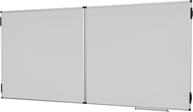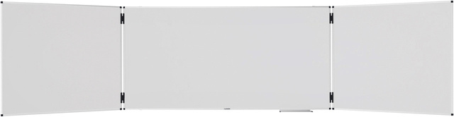* Tableau blanc magnétique hybride et repliable offrant beaucoup d'espace pour écrire, fixer des notes et des images dans les salles de conférence ou les salles de classe. * Deux volets rabattables double face qui peuvent être verrouillés à l'aide de crochets. * Convient pour écrire avec des marqueurs effaçables à sec pour tableaux blancs. * Surface magnétique en acier émaillé utilisant l'acier céramique e3, qui est certifié Cradle to Cradle™ niveau Bronze. * Cadre en aluminium avec coins en plastique gris (Pantone 433C). * Porte-marqueurs (30 cm), kit de montage et notices de montage inclus. * Legamaster propose une large gamme d'accessoires: Nous vous recommandons le kit d'accessoires pour tableau blanc Professional de 77 pièces et les marqueurs effaçables à sec pour tableau blanc
